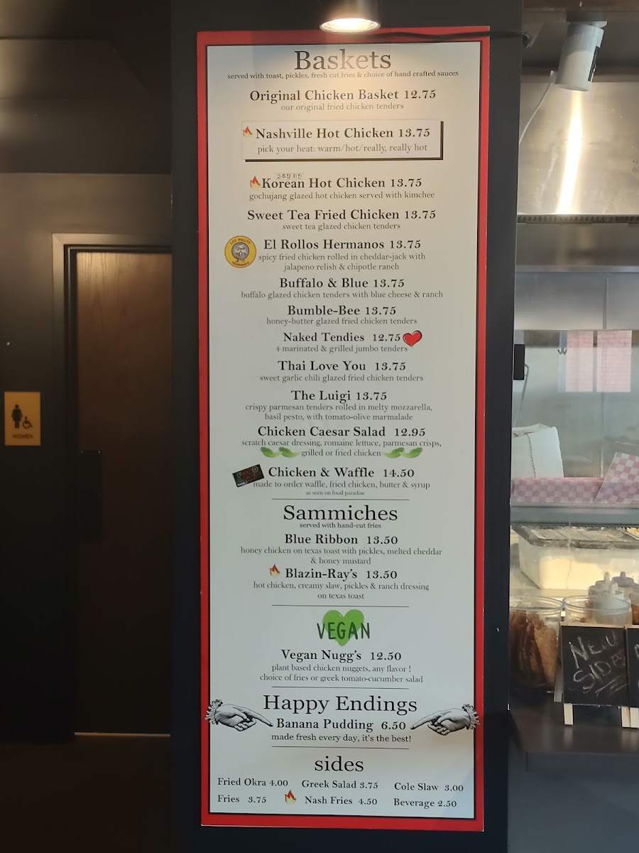 Our made for scratch Nashville Hot sauce Fried Chicken Tenders served with toast, pickles, fresh cut fries & choice of hand crafted sauces
